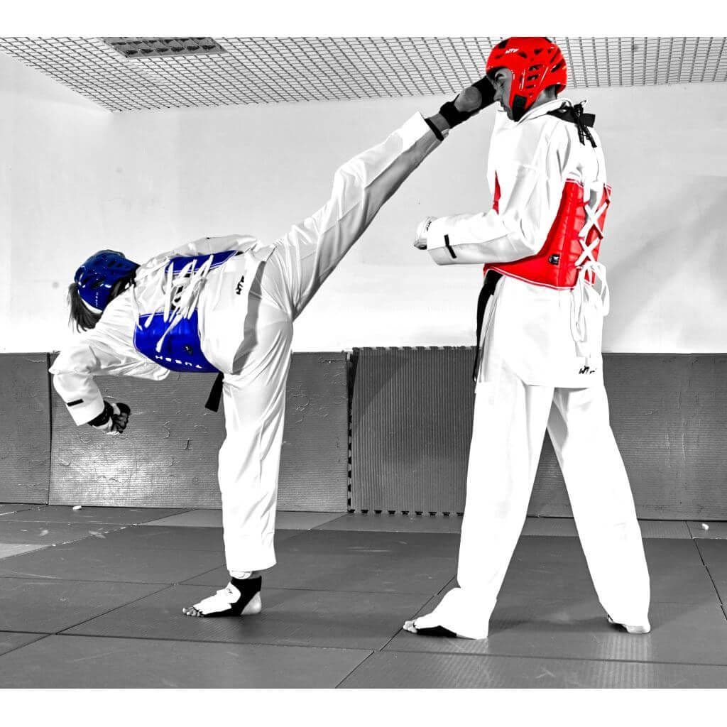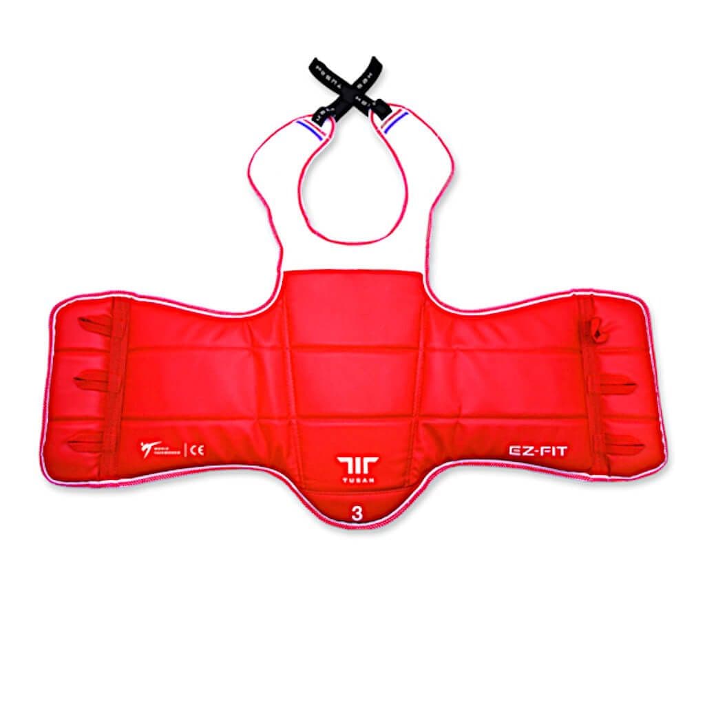 World Taekwondo approved reversible red/blue trunk protector.